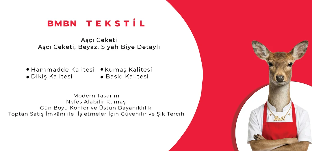 Aşçı Ceketi, Beyaz, Siyah Biye Detaylı